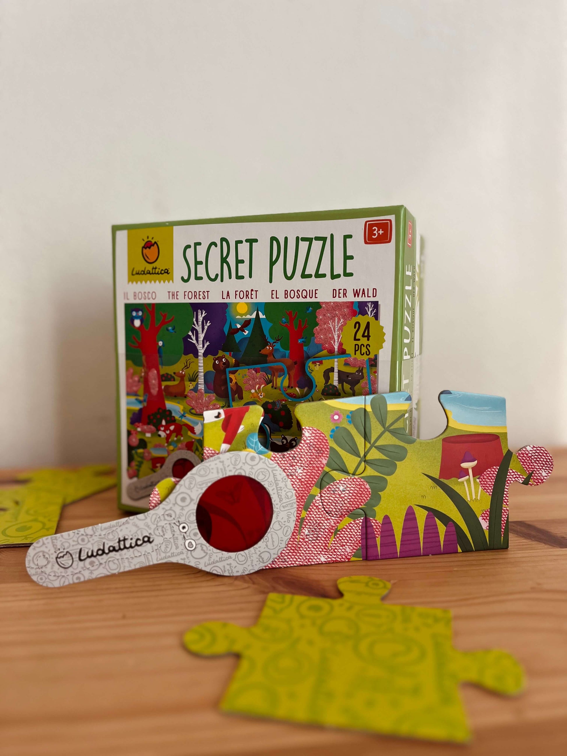 Hravé hľadanie detailov s lupou dodáva puzzlu príchuť dobrodružstva — ideálne na chvíle, keď chcete, aby sa dieťa niečím pekným zabavilo, kým vy získate chvíľku pre seba.