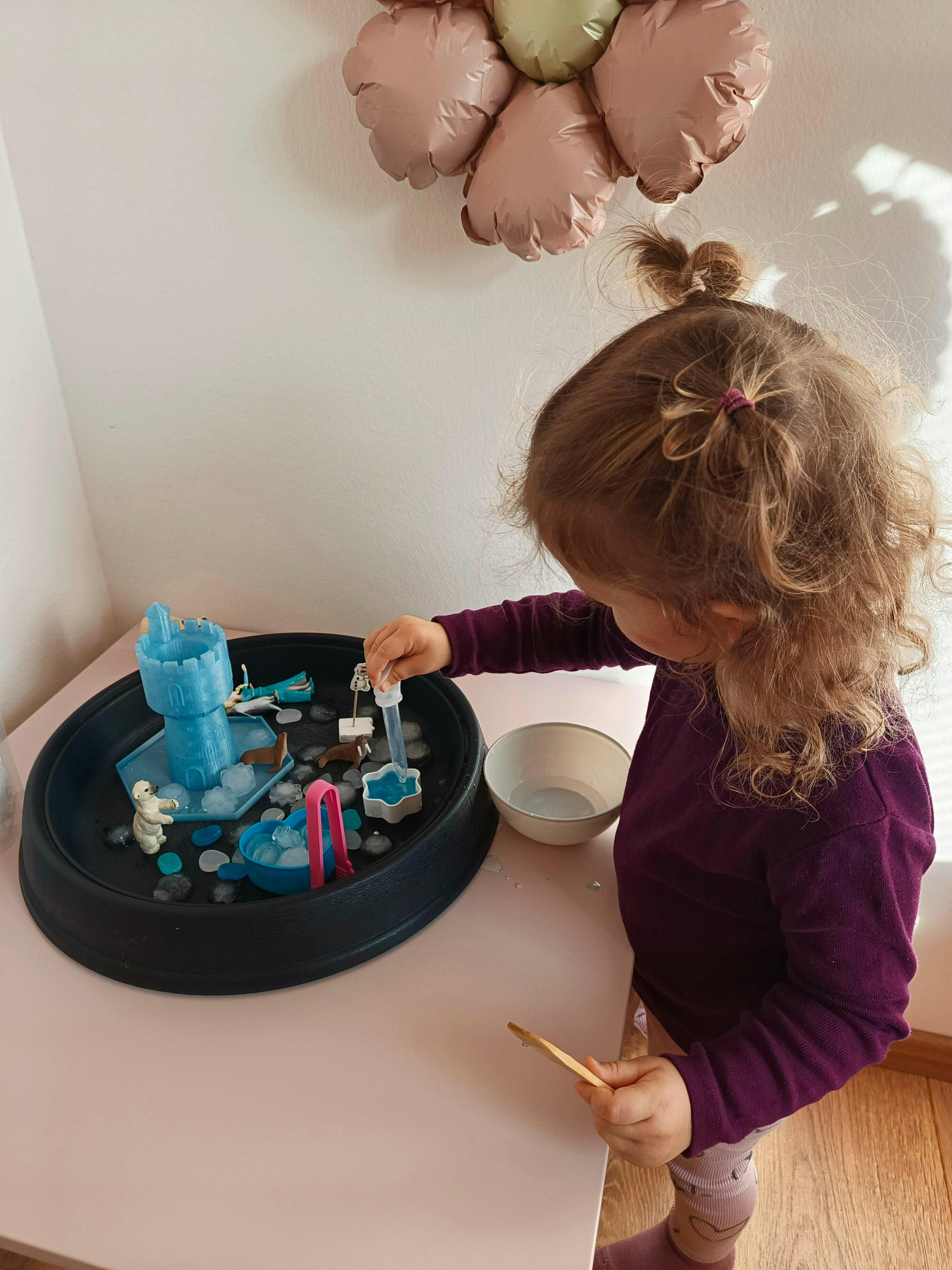 Produkty sú vytvorené na hru v nádobkách s lyžičkami a kvapátkami, ak má tvoje dietko citlivú pokožku, pri kontakte s produktom môže prísť ku podráždeniu. Ak dôjde k podráždeniu, používanie prerušte.