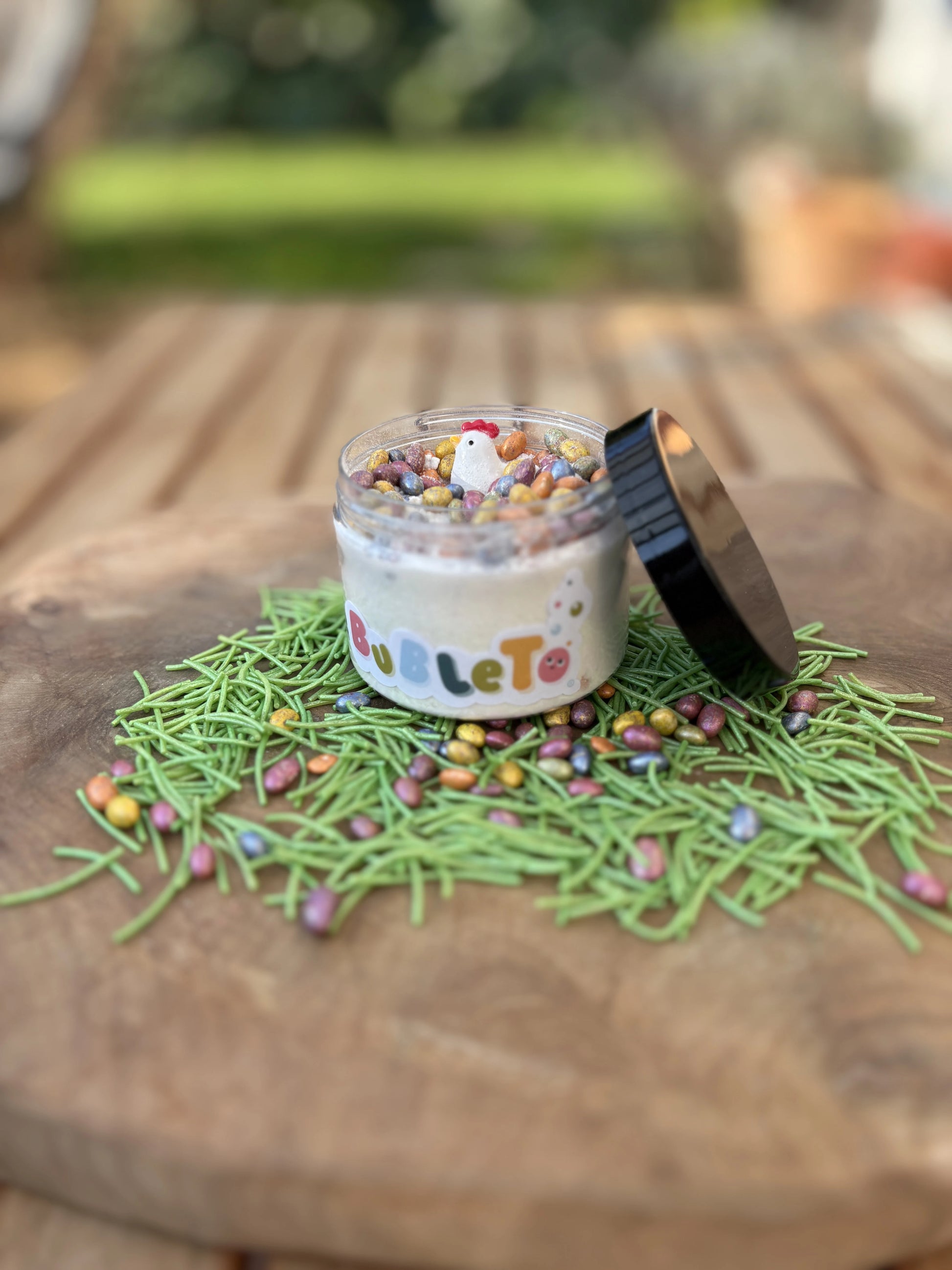 Náš veľkonočný BubleTo prášok vonia po cukríkoch a v prášku sa okrem farebných vajíčok skrýva prekvapenie. Koho nájdeš pod viečkom ty? Zajka, kuriatko alebo barančeka — zasielame mix, takže aj to je prekvapenie. 🐣